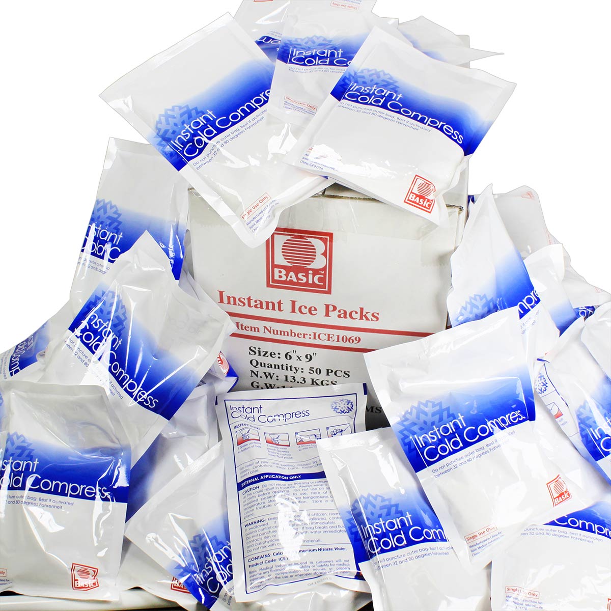Our 6″ x 9″ Instant Cold Compress temporarily relieves minor pain and swelling for sprains, strains, aches, bruising, and sore joints. The Urgent First Aid™ instant cold packs are conveniently disposable with no pre-chilling required for quick, effective relief. No messy ice bags needed. Just shake, squeeze, shake again and apply for instant cool comfort and treatment of injuries.