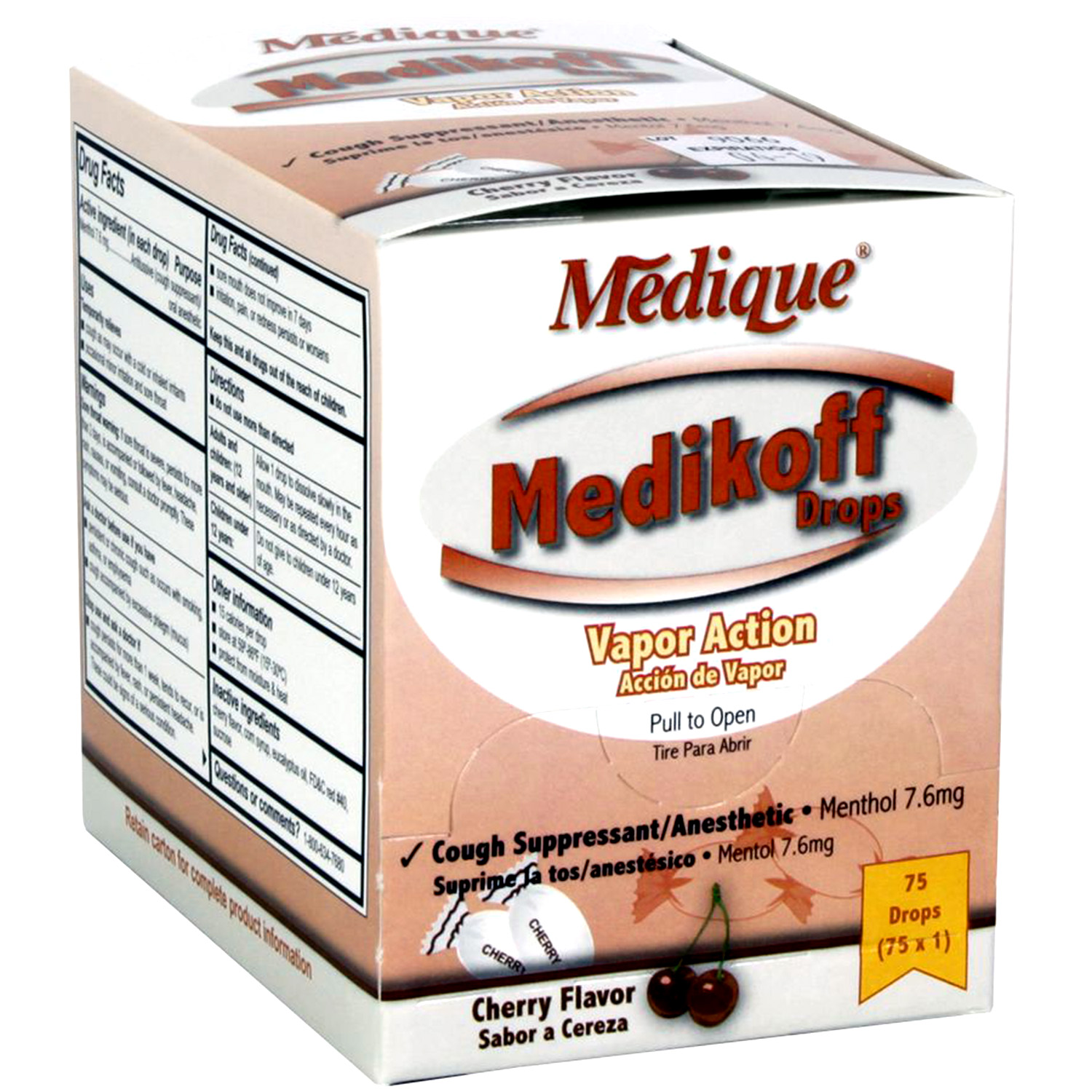 MediKoff Menthol/eucalyptus cough drops. 75 drops per box