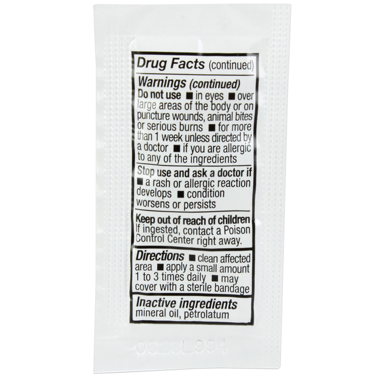 0.9g Single Antibiotic Ointment with Bacitracin (144 ct. Box) Pouch: 1.25″ x 2.48″ / Box: 3.25″ x 3.5″ x 6.38″NDC 61010-5601-2